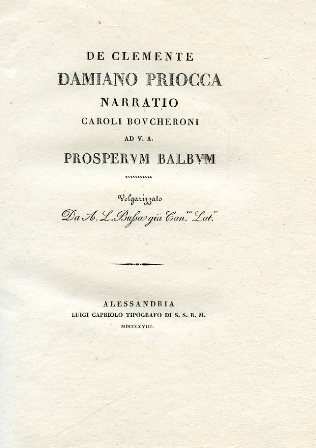 De Clemente Damiano Priocca Narratio Caroli Boucheron ad v. a. Prosperum Balbum. Volgarizzato da A. L. Bussa già Can.co Lat.se
