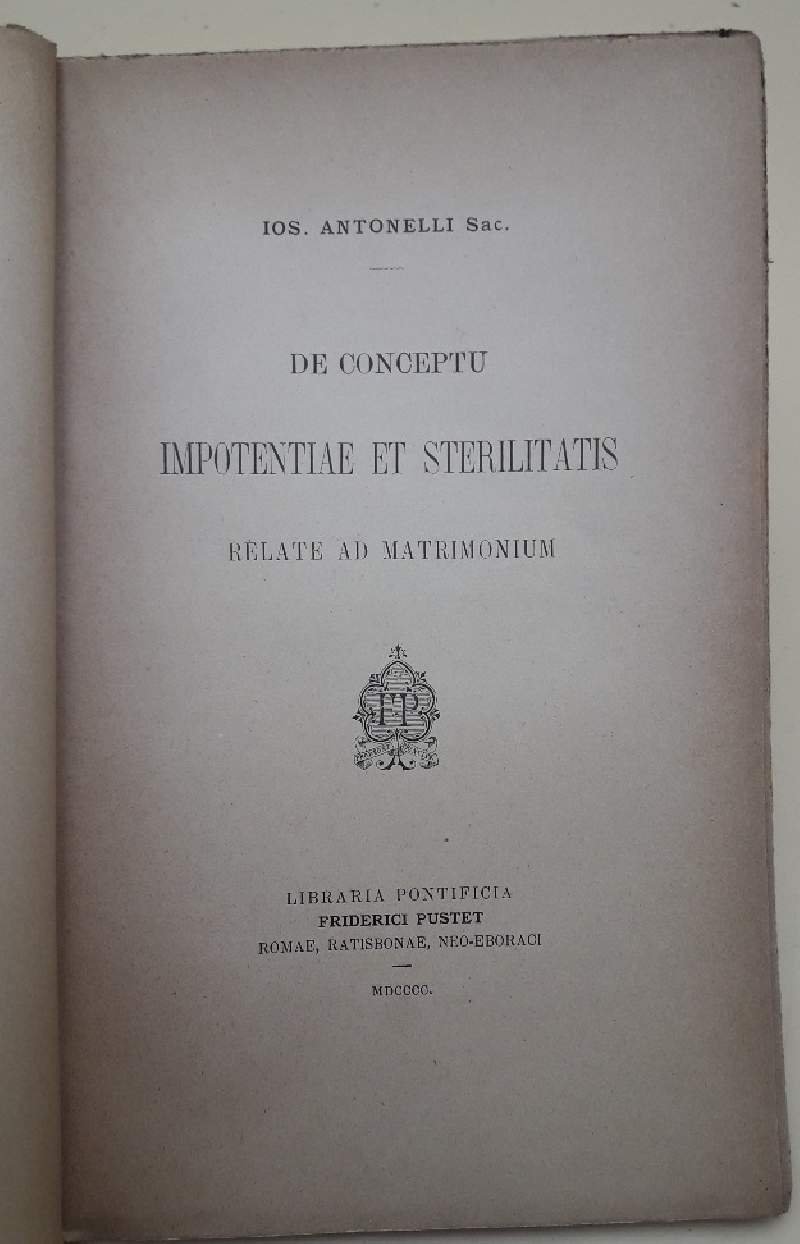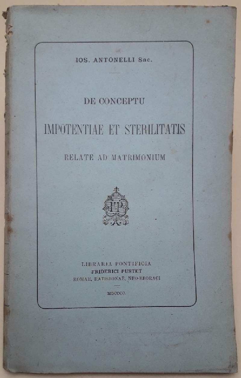 DE CONCEPTU IMPOTENTIAE ET STERILITATIS RELATE AD MATRIMONIUM(1800) | Libri antichi e moderni | Ios. Antonelli Sac.