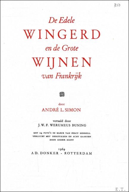 DE EDELE WINGERD EN DE GROTE WIJNEN VAN FRANKRIJK | Libri antichi e moderni | Andre L. Simon.