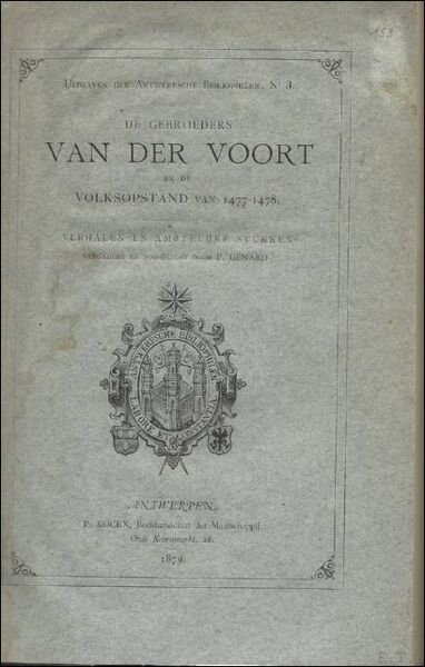 DE GEBROEDERS VAN DER VOORT EN DE VOLKSOPSTAND VAN 1477 - 1478. Antwerpsche Bibliophilen