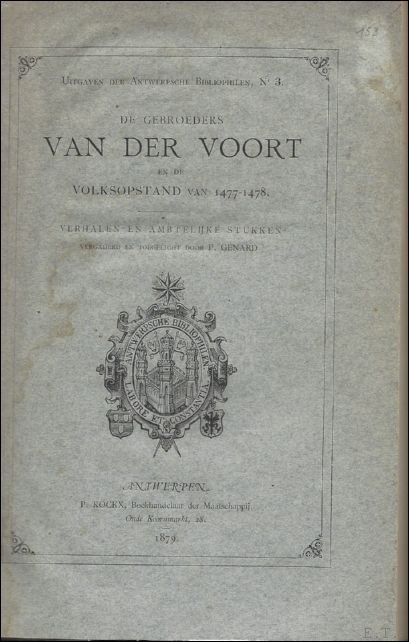 DE GEBROEDERS VAN DER VOORT EN DE VOLKSOPSTAND VAN 1477 - 1478. Antwerpsche Bibliophilen | Libri antichi e moderni | Genard, P.