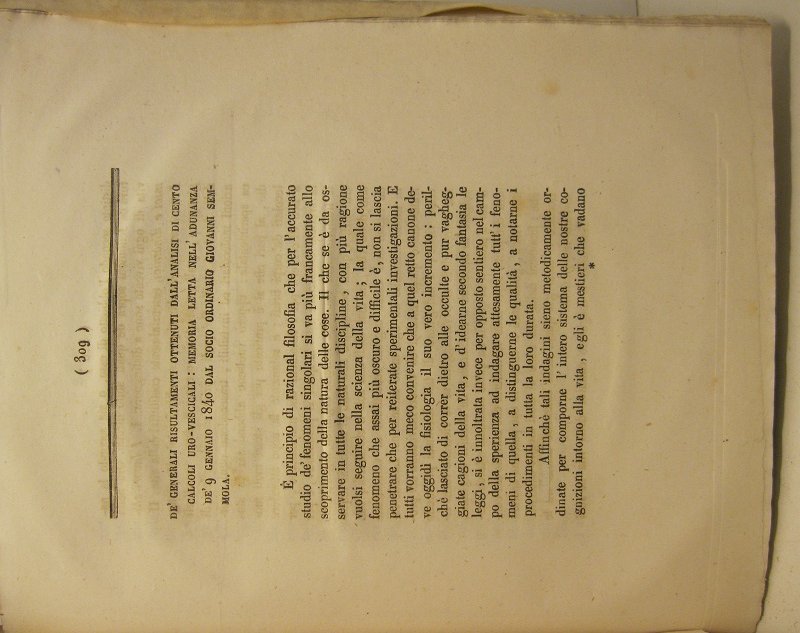 De' generali risultamenti ottenuti dall'analisi di cento calcoli uro-vescicali. Memoria. | Libri antichi e moderni | Semmola Giovanni