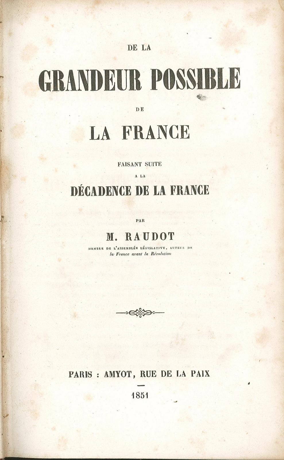 De la grandeur possible de la France faisant suite a la decadence de la France | Libri antichi e moderni | Raudot M., Raudot M.