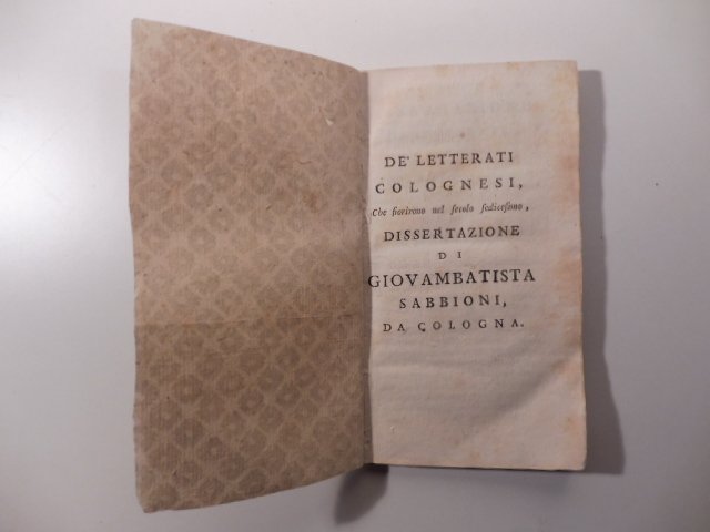 De' letterati colognesi, che fiorirono nel secolo sedicesimo, dissertazione di Giovambattista Sabbioni, da Cologna | Libri antichi e moderni | Sabbioni Giovambattista