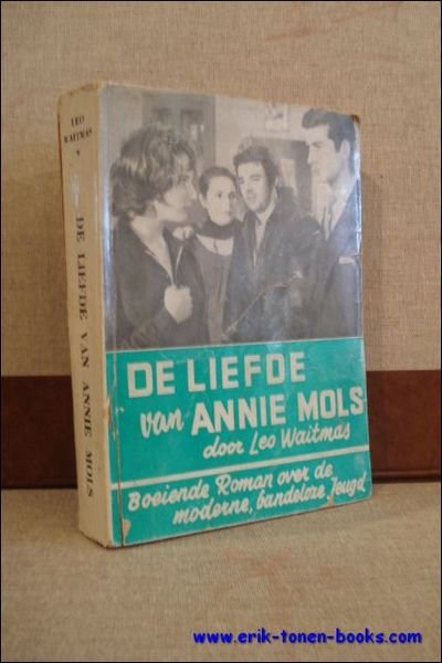 Softcover, groene foto-papieromslag, 140 x 200mm. , 576pp., z/w platen. Boeiende roman over de moderne, bandeloze jeugd. Papieromslag begint los te laten, pagina's licht vergeeld, eigen aan ouderdom. Vermoedelijk verscheen het boek in 1959 bij De Vlam in Gent. De Vlam was een weekblad en De Liefde van Annie Mols was dus een feuilleton in de vorm van afzonderlijke, wekelijkse afleveringen. Het verhaal bevatte al de kern van Het nieuwe onkruid, het verhaal over twee jonge meisjes die uit liften gaan (en later terecht zullen komen in het door Boon herschreven Als het onkruid bloeit).