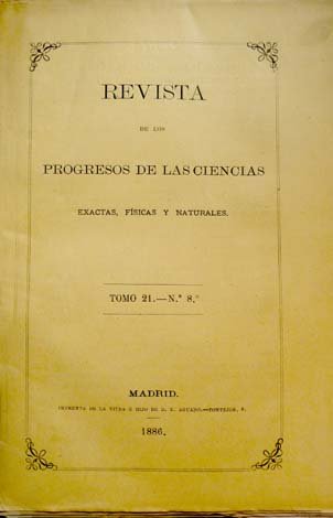 de los Progresos de las Ciencias Exactas, Físicas y Naturales. Tomo 21, nª 8: Determinación de la hora con un anteojo portátil de pasos, en coincidencia aproximada con el meridiano, por Miguel Merino (y) Nivelación barométrica. (Datos de Escuelas Pías de Zaragoza, de Barbastro, de Tafalla, de Sos, y de Jaca; ademas de en Tamarite de Litera por el Dr. Joaquín Carpi). | Libri antichi e moderni | Revista