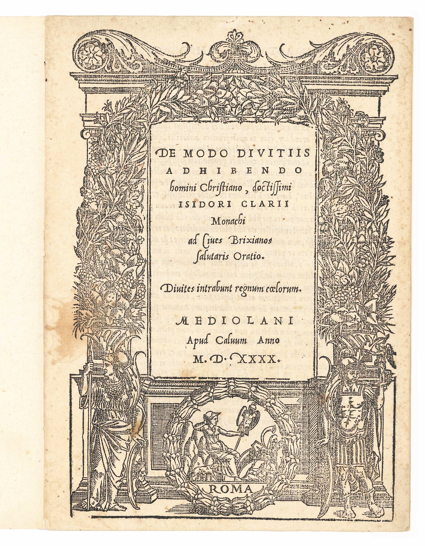 De modo divitiis adhibendo homini Christiano, doctissimi Isidori Clarii monachi ad Cives Brixianos salutaris Oratio | Libri antichi e moderni | CLARIO, Isidoro (1495-1555)