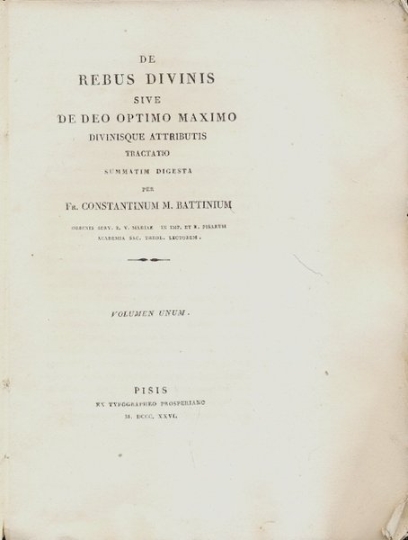 De Rebus Divinis sive de Deo Optimo Maximo Divinisque Attributis tractatio summatim digesta. | Libri antichi e moderni | Battinium Constantinum M.
