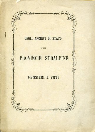 Degli Archivi di Stato delle Provincie Subalpine. Pensieri e voti | Libri antichi e moderni |