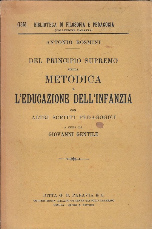 Del principio supremo della metodica e l'educazione dell'infanzia : con altri scritti pedagogici | Libri antichi e moderni | Rosmini, Antonio, ,Rosmini, Antonio