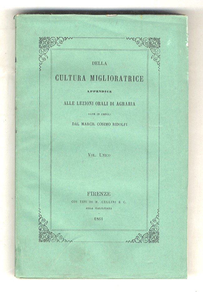 Della cultura miglioratrice. Appendice alle Lezioni orali d'agraria, date in Empoli. | Libri antichi e moderni | Ridolfi Cosimo. (Marchese).
