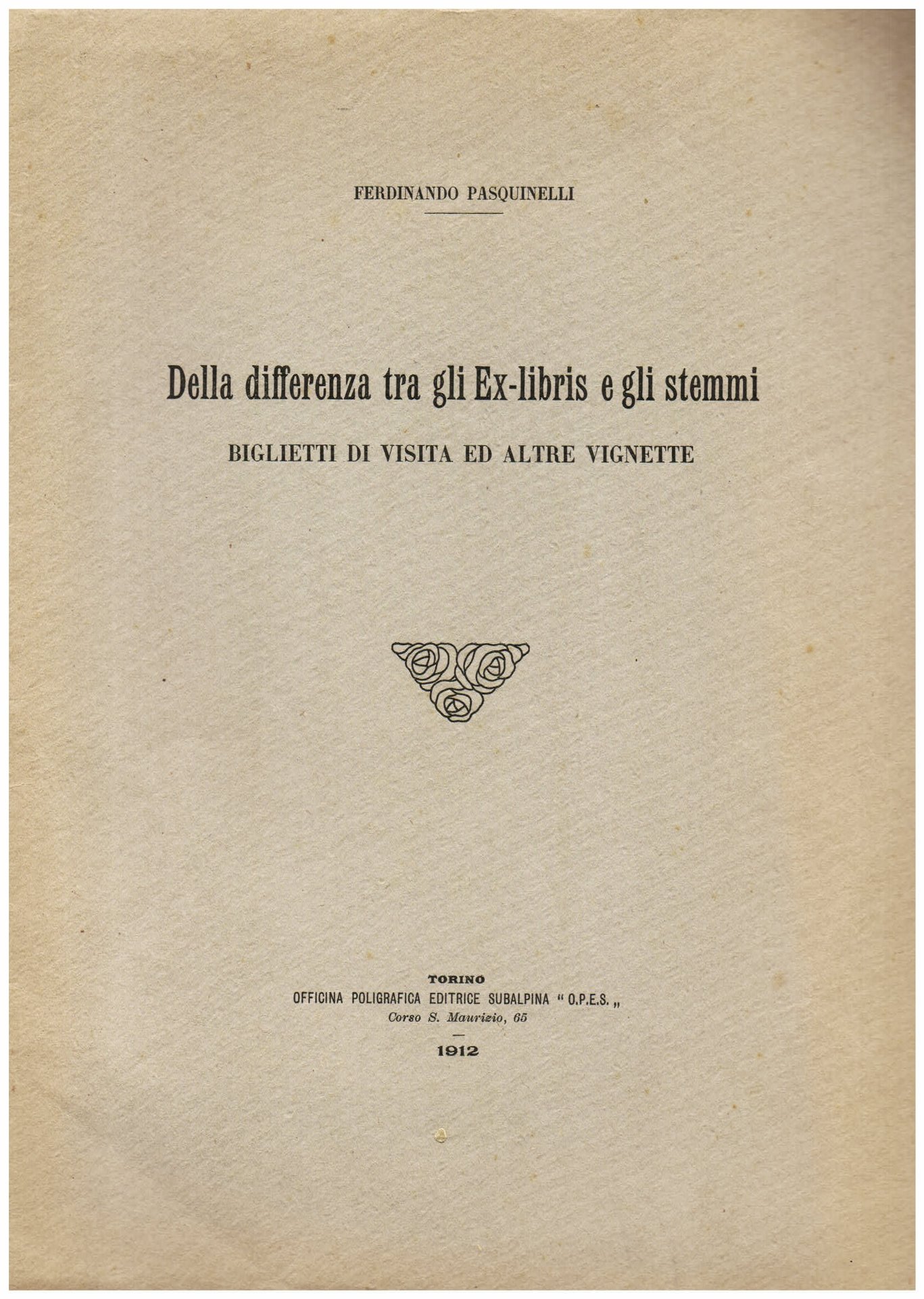 Della differenza tra gli Ex - libris e gli stemmi biglietti da visita ed altre vignette | Libri antichi e moderni | Pasquinelli Ferdinando