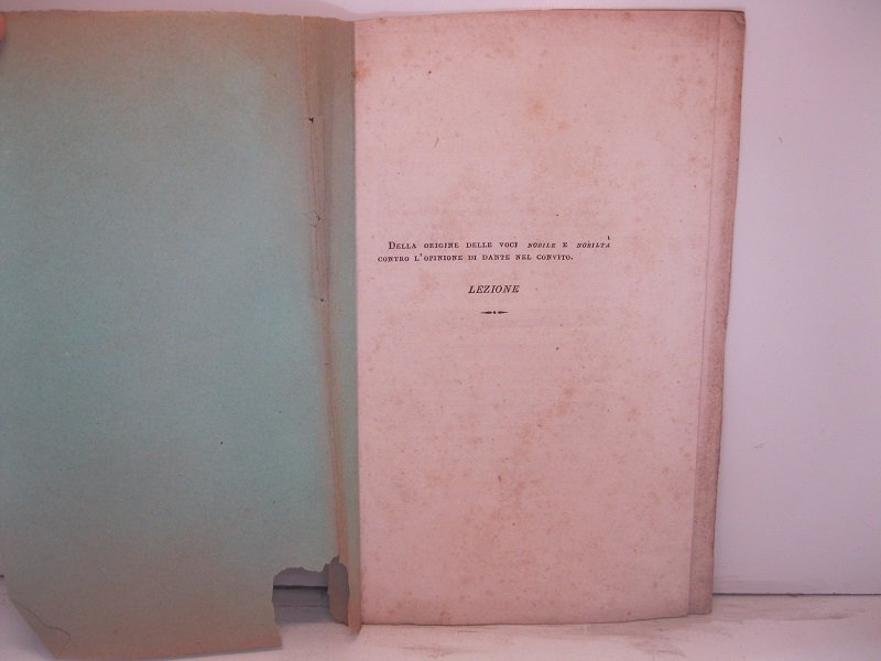 Della origine delle voci nobile e nobilta' contro l'opinione di Dante nel Convito. Lezione. | Libri antichi e moderni | (Galvani G.)