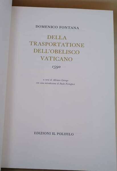 DELLA TRASPORTATIONE DELL'OBELISCO VATICANO(1978) | Libri antichi e moderni | Fontana Domenico
