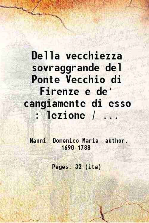 Della vecchiezza sovraggrande del Ponte Vecchio di Firenze e de' cangiamente di esso 1763 | Libri antichi e moderni | Domenico M. Manni