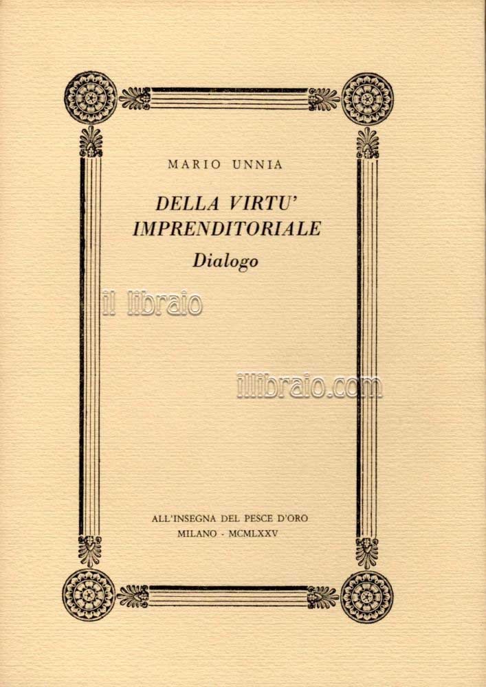 Della virtù imprenditoriale. Dialogo | Libri antichi e moderni | Unnia M.