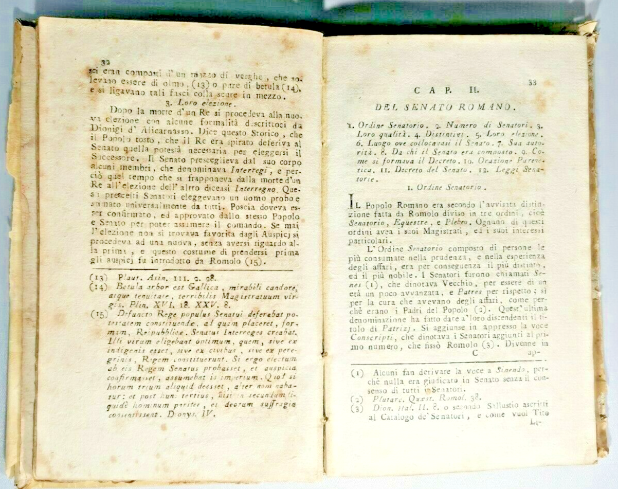 DELLA VITA PUBBLICA DE ROMANI tomo 1 di Ferdinando Secondo 1817 libro antico
