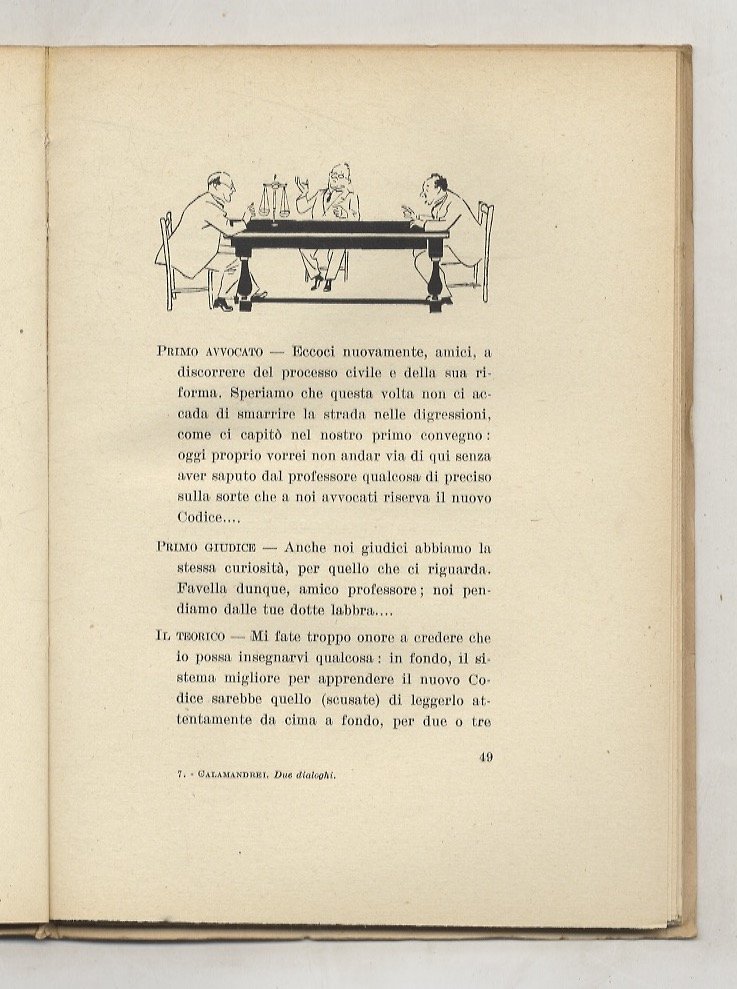 Delle buone relazioni fra i Giudici e gli Avvocati nel nuovo processo civile. Due dialoghi. | Libri antichi e moderni | Calamandrei Piero.