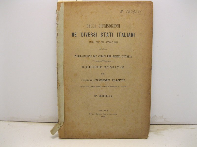 Delle giurisdizioni ne' diversi stati italiani dalla fine del secolo XVIII alla pubblicazione de' codici pel Regno d'Italia. Ricerche storiche. 2o edizione | Libri antichi e moderni | Ratti Cosimo