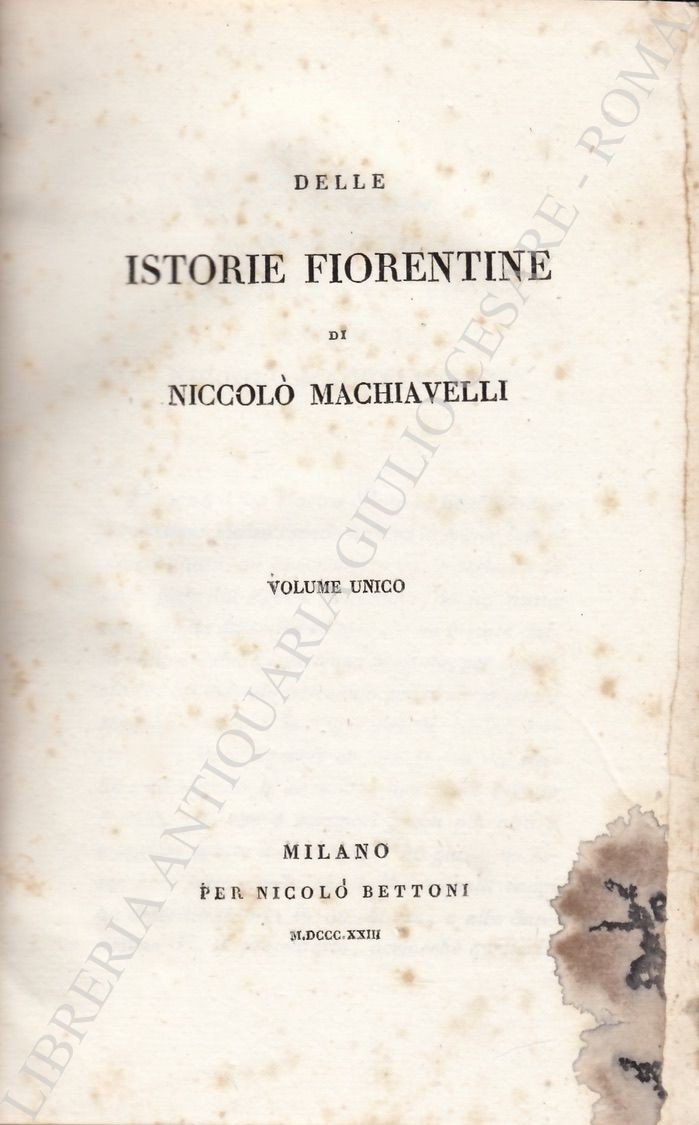 Delle Istorie Fiorentine. Volume unico | Libri antichi e moderni | Machiavelli Niccolò (1469-1527)