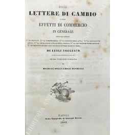 Delle lettere di cambio e degli effetti di commercio in genere. Opera che contiene 1° Un trattato. 2° La giureprudenza. 3° La opinione degli autori. 4° La legislazione antica. 5° La legislazione attuale della Francia. 6° La legislazione internazionale. 7º Un trattato intorno agli usi delle diverse piazze in Europa | Libri antichi e moderni | Nouguier Luigi