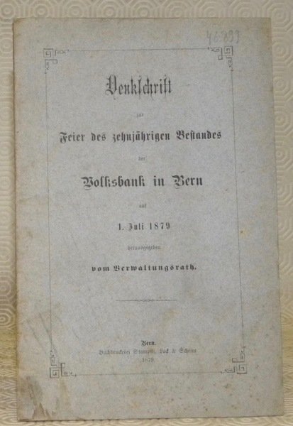 Denkschrift zur Feier des zehnjährigen Bestandes der Volksbank in Bern auf 1. Juli 1879 hrsg. vom Verwaltungsrath.