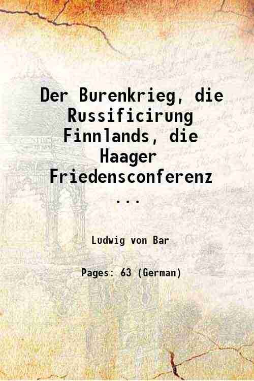 Der Burenkrieg, die Russificirung Finnlands, die Haager Friedensconferenz . 1900 | Libri antichi e moderni | Ludwig Von Bar