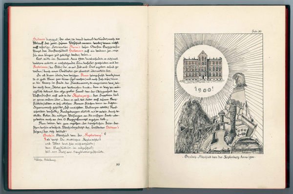 Deutsche Handschrift in rot und schwarz mit zahlreichen, teils figürlichen Initialen und teilweise blattgroßen Illustrationen in Federzeichnung. 241 SS. Blind- und goldgeprägter grüner Ganzleinenband der Zeit mit Deckeltitel. Ornamentale Vorsätze, dreiseitiger Rotschnitt. 4to. Äußerst aufwendig gestaltete, ausführliche Chronik der 1896 gestifteten "Ritterschaft Kepleriania" - so die launige Selbstbezeichnung des Lehrkörpers der Wiener Knabenvolksschule in der Favoritener Keplergasse 11, wo der Verfasser unter den Pseudonymen "Wolfram von Hirschensprung" bzw., im Amte des "Chronisten und Geheimschreibers", "Magister Weishar" von spätestens 1880 bis zu seinem Ausscheiden im Jahr 1906 als Erzieher wirkte. - Die wehmütig rückblickende Chronik wurde vom 1917 bereits pensionierten Volksschullehrer Hirsch mit großer Liebe zum historistischen Detail ausgeführt. Die blattgroßen Illustrationen zeigen Ansichten mehrerer beliebter Ausflugsziele um Wien, die bei den damaligen "Heerfahrten" heimgesucht wurden, darunter die Burgen Greifenstein, Liechtenstein, Kreuzenstein und Kammerstein sowie Ortsansichten von Altenberg und Pötzleinsdorf. Die übrigen Zeichnungen nehmen Alltagsszenen und Begebenheiten von Mitgliedern der "Ritterschaft" aufs Korn. Beim Buchschmuck nahm sich der Autor manche Anregung bei den Illustratoren der Wiener Secession zum Vorbild: So ziert etwa der Ritter, den Carl Otto Czeschka für die 1000-Jahr-Feier Mödlings 1908 als Plakatmotiv wählte, die Einleitung des vorliegenden Manuskripts. Die verspielten Pseudonyme der "Ritter" werden mit den entsprechenden wirklichen Namen der Volksschulpädagogen aufgelöst. - Oberes Kapital minimal eingerissen, Ecken gering bestoßen, sonst ausgezeichnet erhalten.