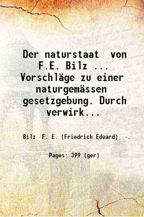 Der naturstaat von F.E. Bilz . Vorschl‰ge zu einer naturgem‰ssen gesetzgebung. Durch verwirklichung derselben w¸rde das heutige massenelend das besonders Deutschland schwer trifft bald behoben werden. 1922