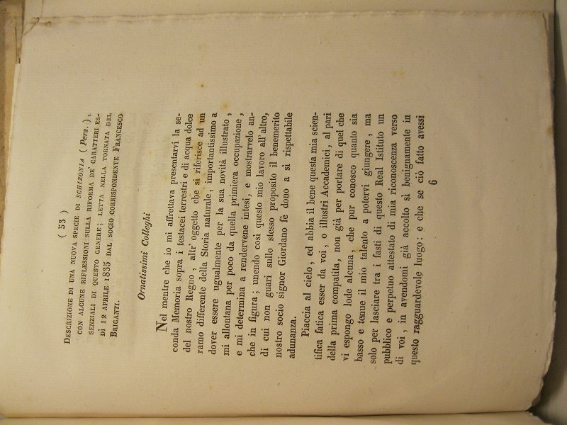 Descrizione di una nuova specie di schizonia (Pers.) con alcune riflessioni sulla riforma de' caratteri essenziali di questo genere letta nella tornata del di' 12 aprile 1835. | Libri antichi e moderni | Briganti Francesco
