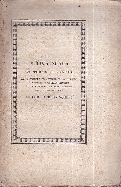 Descrizione ed uso di una nuova scala da applicarsi al barometro per conoscere le altezze dei luoghi senza calcolo, cui precede un compendio teorico-pratico sule livellazioni barometriche con tavola in rame | Libri antichi e moderni | Bertoncelli Jacopo
