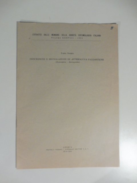 Descrizioni e segnalazioni di apterogyna paleartiche | Libri antichi e moderni | Invrea Fabio