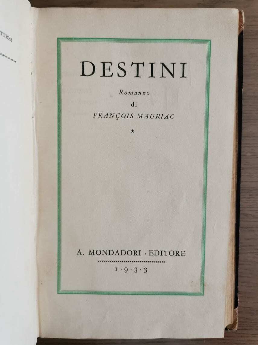 Destini - F. Mauriac - Mondadori - 1933 - AR | Libri antichi e moderni |