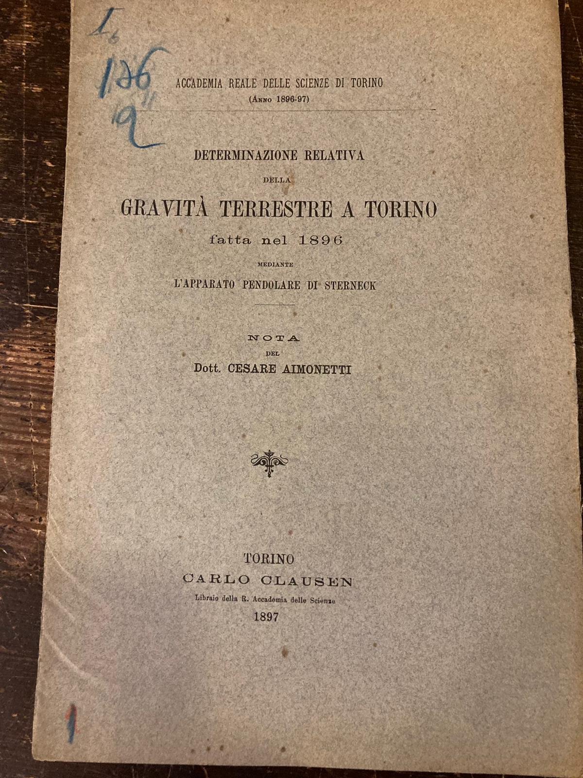 Determinazione relativa della gravità terrestre a Torino fatta nel 1896 mediante l'apparato pendolare Sterneck | Libri antichi e moderni | Aimonetti Cesare