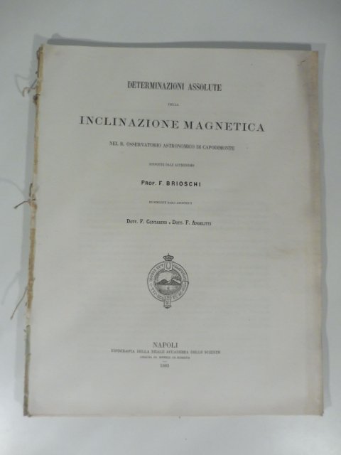 Determinazioni assolute della inclinazione magnetica nel R. Osservatorio di Capodimonte, 1883-1884 | Libri antichi e moderni | Brioschi F.