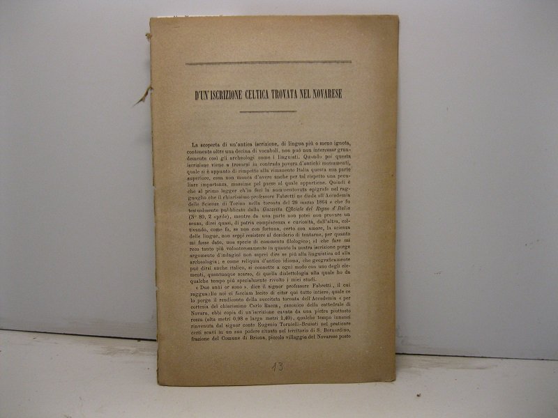 Di un'iscrizione celtica trovata nel Novarese | Libri antichi e moderni | Flechia Giovanni