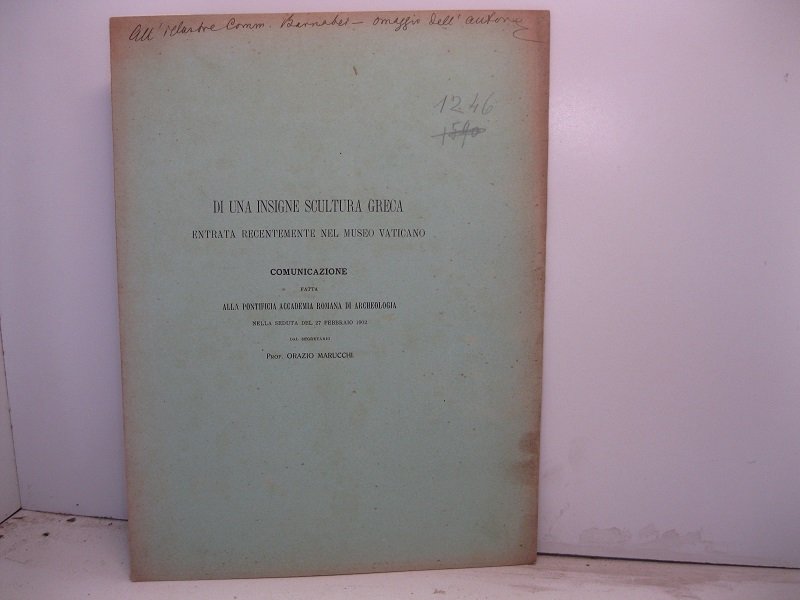 Di una insigne scultura greca entrata recentemente nel Museo Vaticano. Comunicazione fatta alla Pontificia Accademia Romana di Archeologia nella seduta del 27 febbraio 1902 dal segretario Prof. Orazio Marucchi | Libri antichi e moderni | Marucchi Orazio