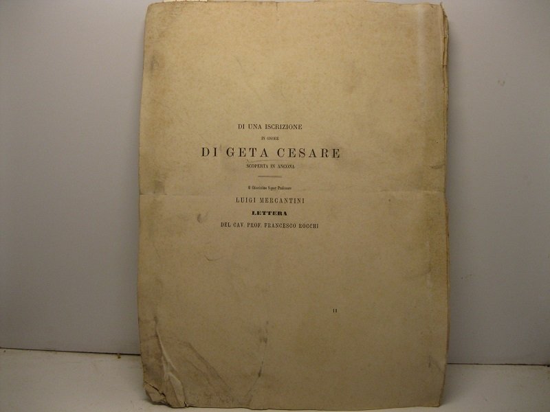 Di una iscrizione in onore di Geta Cesare scoperta in Ancona. Al Chiarissimo Signor Professore Luigi Mercantini lettera del Cav. Francesco Rocchi | Libri antichi e moderni | Rocchi Francesco