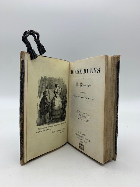 2 volumi in 24 rilegati in un tomo unico (cm 9,5 x 15,5), pp. 157 + (3 bianche) con 1 tavola illustrata all'antiporta; 182 con 1 tavola illustrata all'antiporta. Legatura coeva in mezza pelle. Due volumi della collana "Florilegio romantico" con la traduzione italiana di due opere di Alexandre Dumas figlio. Il nome del traduttore e' indicato con le sole iniziali: V. C.