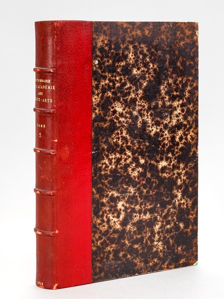 1 vol. grand in-8 reliure de l'époque demi-maroquin rouge, dos à 5 nerfs, tête dorée, Chez Firmin-Didot Frères, Fils et Cie, Paris, 1858, 336 pp. Bon état (indication erronée en titre et dos "tome Second" alors qu'il s'agit du troisième tome, dos lég. passé et lég. frotté). Projet monumental, ce dictionnaire fut publié jusqu'en 1909 mais ne dépassa pas la lettre G. Les volumes publiés n'en sont pas moins d'un très grand intérêt.