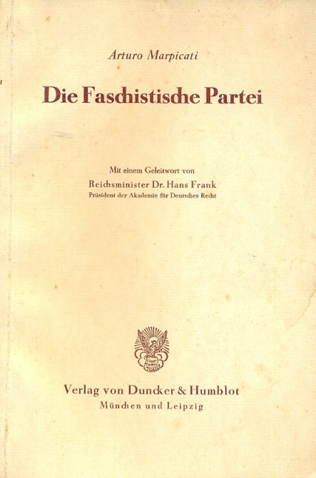 Die Faschistische Partei. Mit einem Geleitwort von Reichsminister Dr. Hans Frank. | Libri antichi e moderni | Marpicati Arturo.