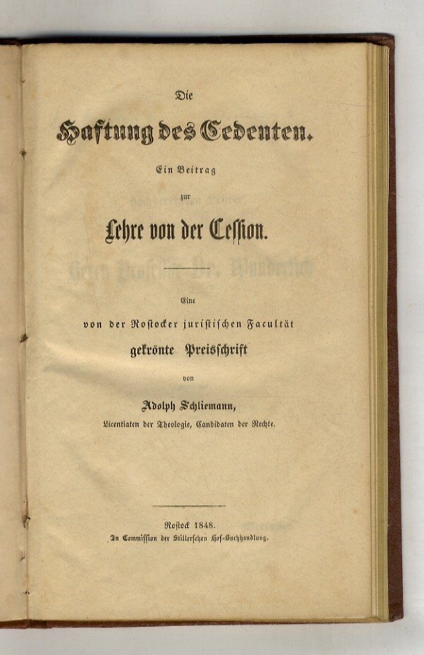Die Haftung des Cedenten. Ein Beitrag zur Lehre von der Cession. | Libri antichi e moderni | Schliemann Adolph.
