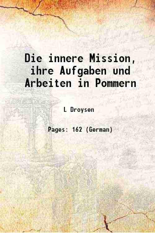 Die innere Mission, ihre Aufgaben und Arbeiten in Pommern 1876 | Libri antichi e moderni | L Droysen