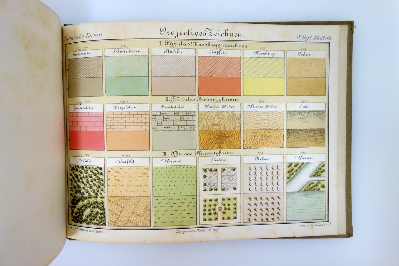 Herder's Verlagshandlung, Freigurg im Breisgau, 1875, cm 15x20; pp. [8]; 132, più 34 tavv. litografiche in b/n e a colori al termine del testo, qualcuna ripiegata; mezza tela ed. con titolo al piatto anteriore. Edizione tedesca, testo a caratteri gotici. Al dorso applicate un paio di vecchie etichette; vecchio timbretto al frontespizio.