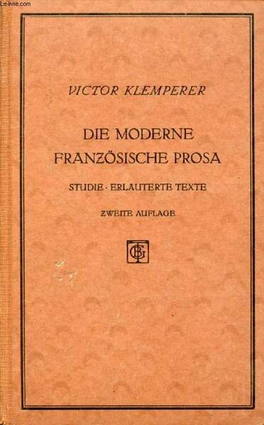 DIE MODERNE FRANZ�SISCHE PROSA (1870-1920), STUDIE UND ERL�UTERTE TEXTE | Libri antichi e moderni | Klemperer Victor
