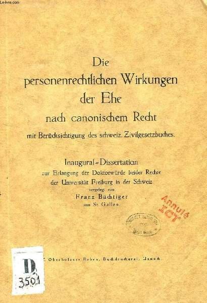DIE PERSONENRECHTLICHEN WIRKUNGEN DER EHE NACH CANONISCHEM RECHT MIT BERÜCKSICHTIGUNG DES SCHWEIZ. ZIVILGESETZBUCHES (INAUGURAL-DISSERTATION) | Libri antichi e moderni | Bächtiger Franz