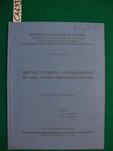 Direttrici tettoniche e assi sismogenetici del basso versante meridionale dell'Etna - (Tesi di Laurea) | Libri antichi e moderni | Santocono Girolamo