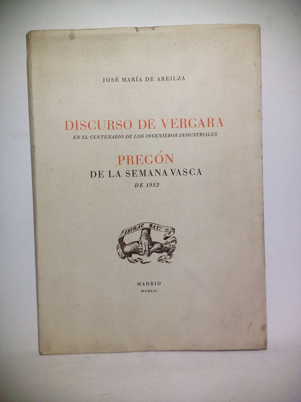 Discurso de Vergara, en el Centenario de los Ingenieros Industriales - Pregón de la Semana Vasca de 1952 | Libri antichi e moderni | Areilza, José María