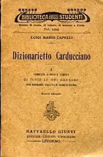 In-16°, pp. 77, brossura editoriale. Buon esemplare. Quarta edizione di questo dizionario carducciano, assai utile per la comprensione dei luoghi più oscuri delle 'Odi Barbare'. Biblioteca degli Studenti, 196.