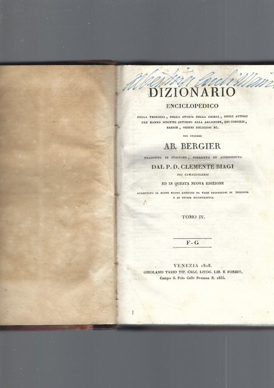 DIZIONARIO ENCICLOPEDICO DELLA TEOLOGIA ECCLESIASTICA, TOMO IV